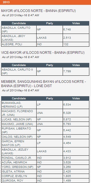 LOCAL 2013 ELECTION RESULTS: ILOCOS NORTE